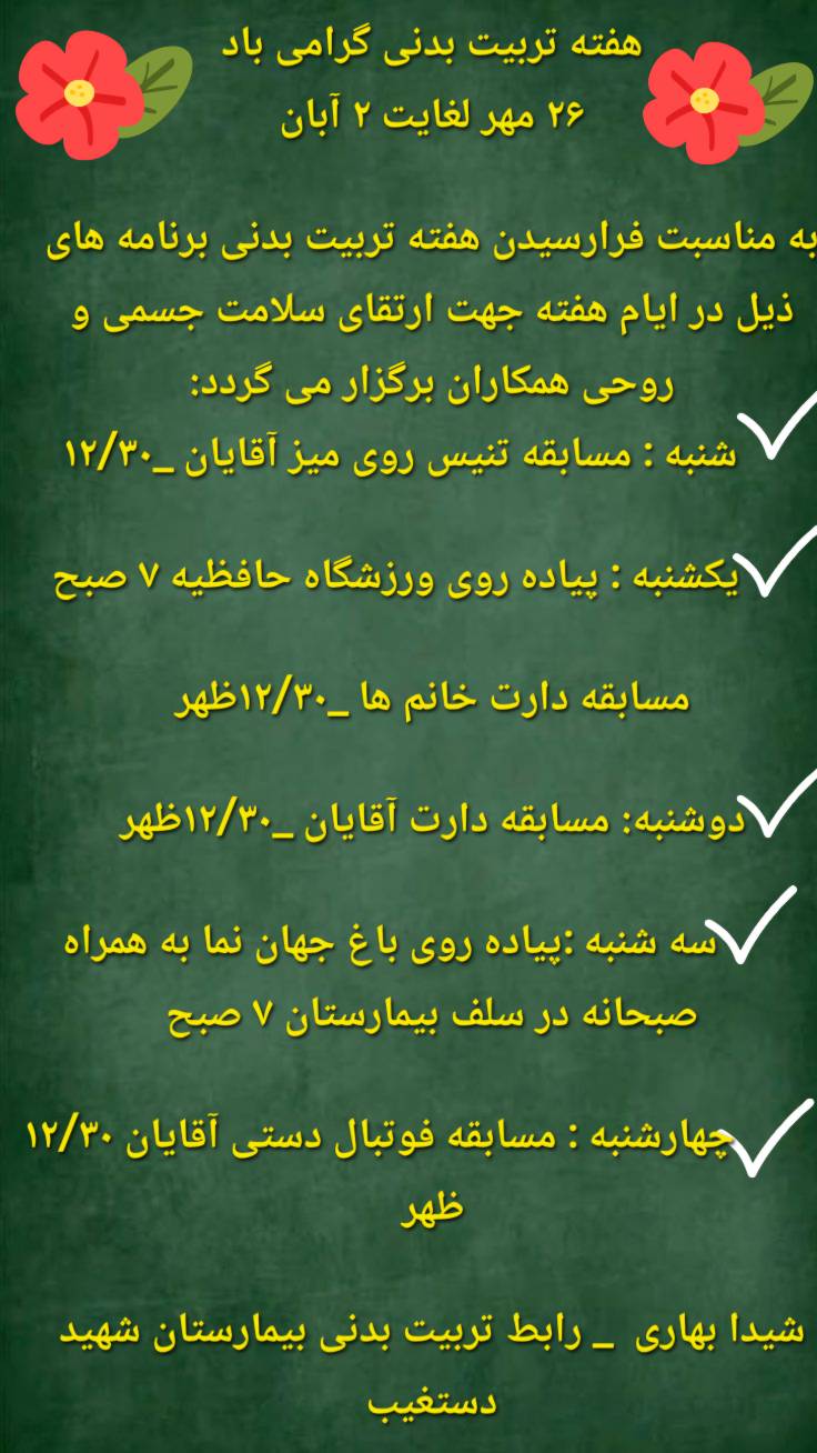 اطلاعیه برنامه زمانبندی برنامه های ورزشی به مناسبت هفته تربیت بدنی