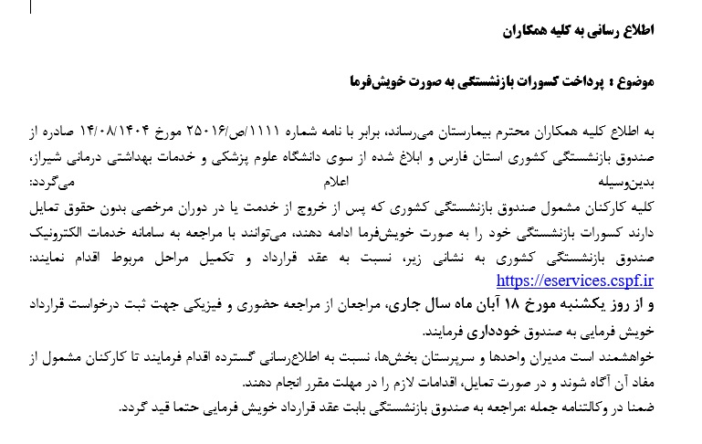 بخشنامه پرداخت کسورات بازنشستگی به صورت خویش فرما