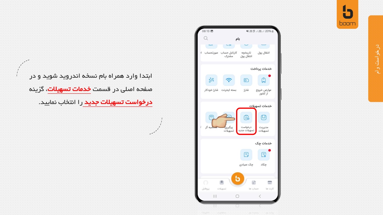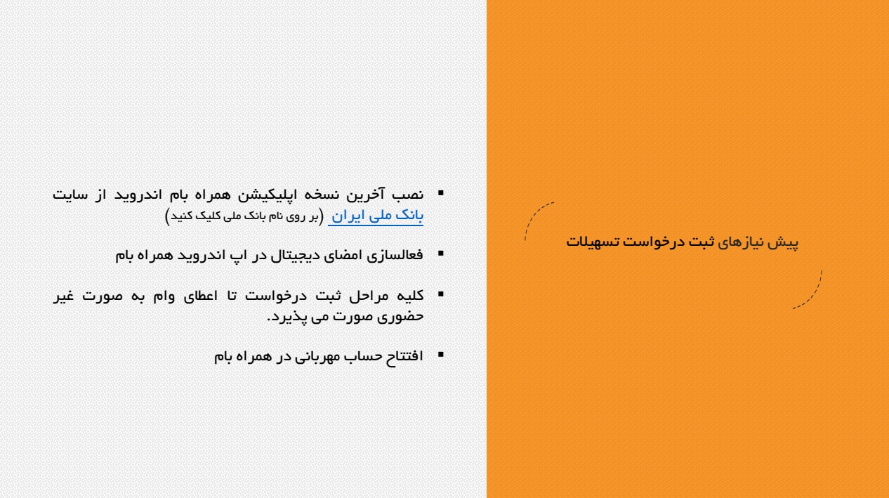 راهنمای درخواست غیر حضوری تسهیلات طرح مهربانی سازمانی (بام بانک ملی)