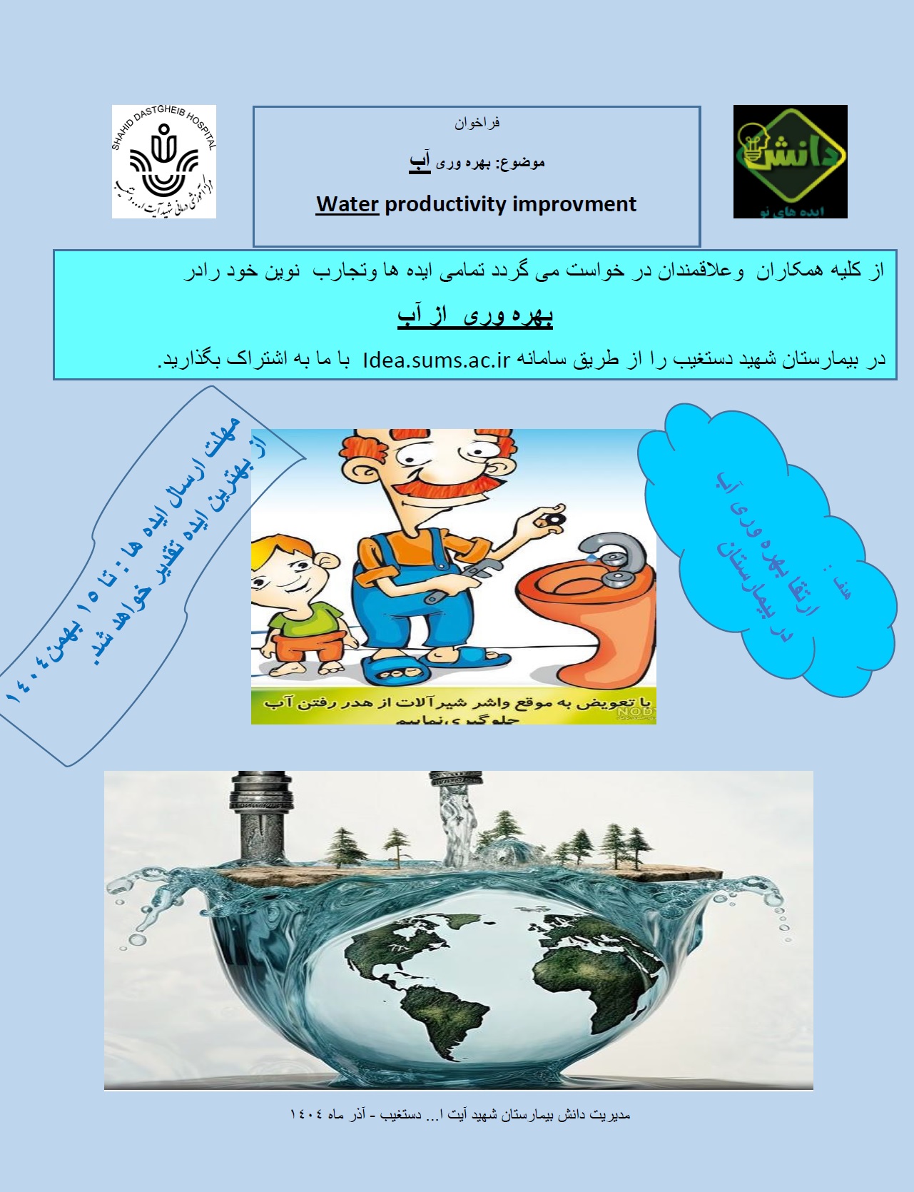با هدف ارتقاء بهره وری آب در بیمارستان، موضوع فراخوان کمیته مدیریت دانش مرکز آموزشی درمانی شهید دستغیب